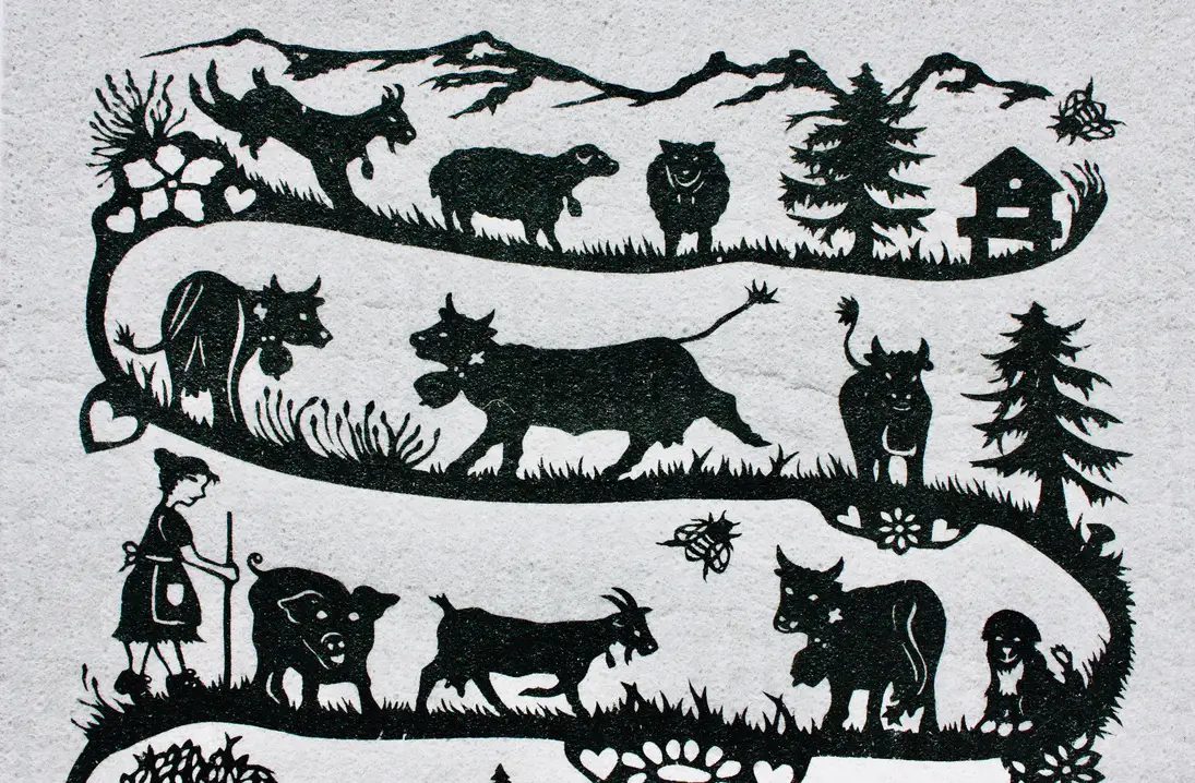 Sie schuf diese Poya (oder Almauftrieb), ein Name, der den Almauftrieb in den Schweizer Alpen bezeichnet, der im Frühjahr stattfindet. Die Poya gehört zu den lebendigen Traditionen unseres Landes.